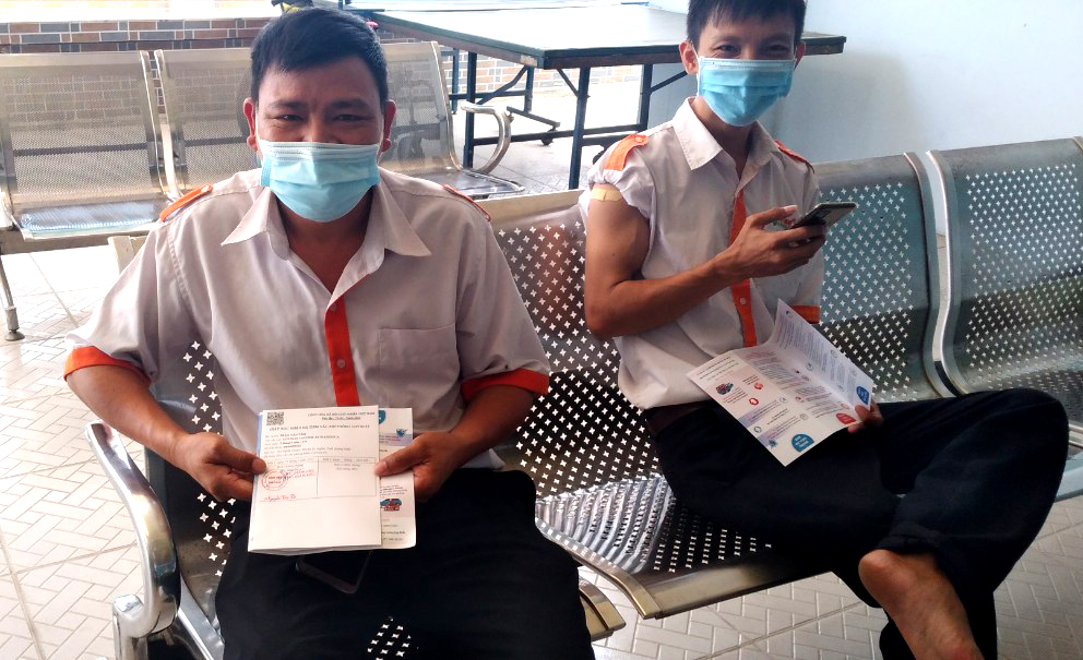 Hình ảnh một số nhân viên lái xe SunTaxi đã được tiêm ngừa vắc xin phòng chống Covid-19 tại chi nhánh.